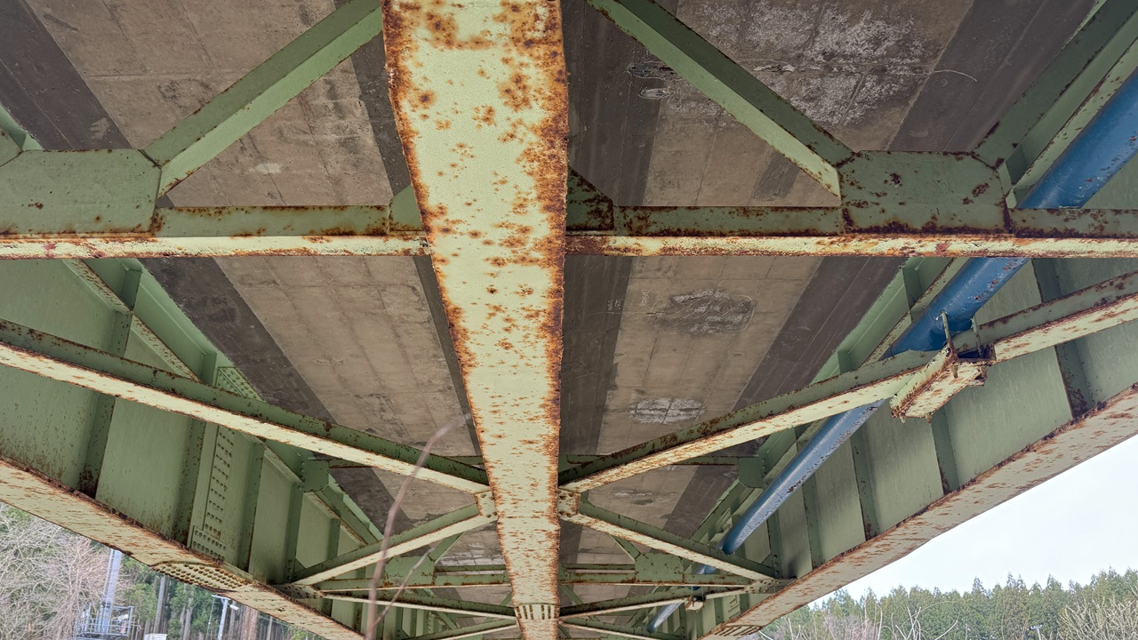 橋梁の塗装は金属の腐食を防ぐ防食効果の目的のほかに、外観を整える効果もあります。当工事は、天王橋の劣化した塗膜を除去し再度塗装することで、鋼材の腐食を防止し橋の寿命を延ばすとともに、美観の回復を図る為の工事です。